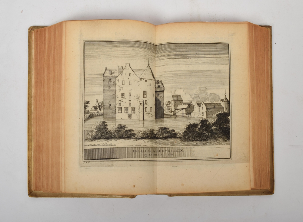 of Woordenboek, behelsende Nederlands steden en dorpen, kasteelen, sloten, en heeren huysen, oude volkeren, rievieren, vermaarde luyden in staat en oorlogh, oudheden, gewoontens en lands wysen. Vercierd met LX verbeeldingen, van soo geheele als vervallende heeren huysen, sloten en kasteelen, meerendeels geteekend door Roeland Rochman (...). Amsterdam, P. de Coup, 1711, (20),402,(26) p., with engraved frontispiece, title vignette and 60 double-page engraved plates by J. Schijnvoet, contemporary vellum.
