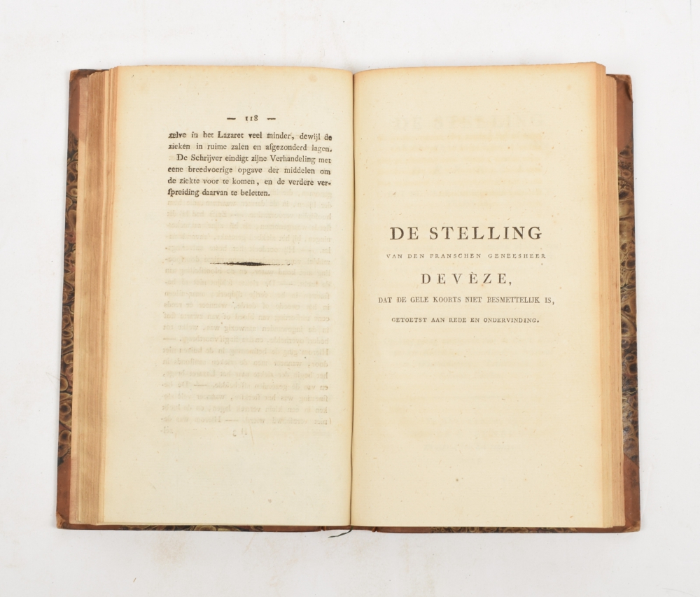 8vo, half leather, the inserted dissertatio, complete with title and 78 pp., then the Verslag with half title, title, IV,118 pp., De stelling van Devèze door A. van Stipriaan Luïscius. Idem. 1825. 54 pp., followed by Nader Onderzoek. E.J. Thomassen a Thuessink. Idem. 1825. 99 pp. Spine with minor imperfections. Text in Dutch, (French) and Latin. Curious and interesting.