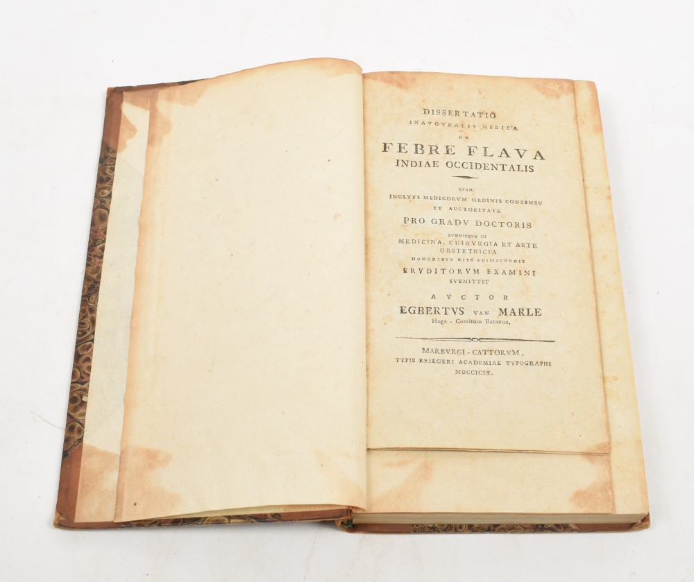 Vooral in betrekking tot het werk van den Franschen geneeskundigen Devèze, over hetzelfde onderwerp door E.J. Thomassen a Thuessink. Amsterdam. Pieper & Ipenbuur. 1822; preceded by the added: Dissertatio Inauguralis Medica de Febre Flava Indiae Occidentalis (...) pro Gradu Doctoris (...) Auctor Egbertus van Marle. Marburg. Krieger. 1799.