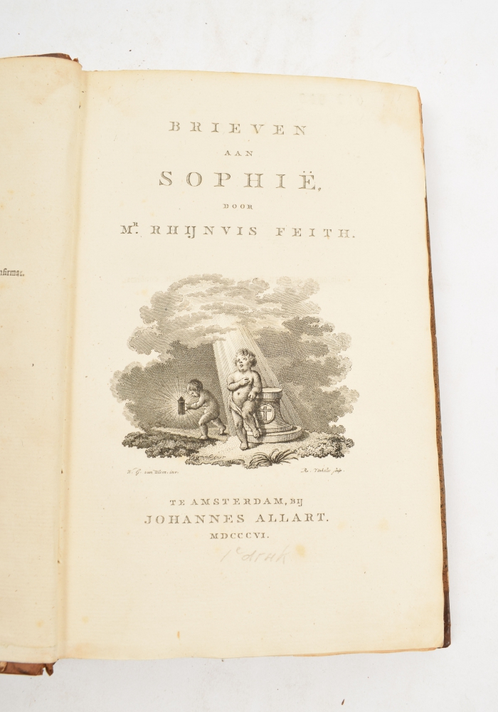 Combined with: Brieven aan Sophie. Mr. Rhijnvis Feith. Amsterdam. Johannes Allart. 1806. First edition. 8vo, title with vignette, 202 pp. + Nagelaten Gedichten van Cornelis Loots. [2 parts in one volume]. Amsterdam. Allart & Van Der Made. 1855. 2x illustrated lithographic title and a portrait by Desguerrois. IV,319 and VI,263 pp. (total 4).