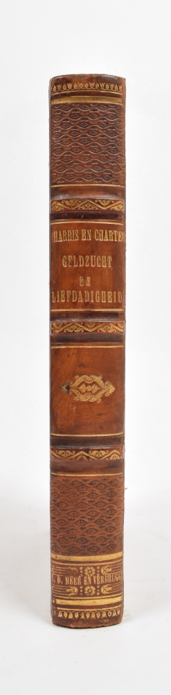Leather, title on spine in gilt stamping, boards with embroidery in gilt stamping, marbled endpapers, title with vignette by J.P. Lange after A. Bakker, various stains, else a very good copy. Not in PiCarta, although with an extensive review in the periodical Vaderlandsche Letteroefeningen (1839, p. 150-53).