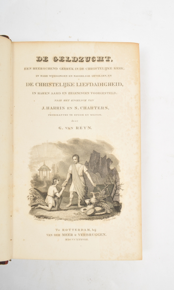 In hare wijzigingen en nadeelige gevolgen, en De Christelijke Liefdadigheid, in haren aard en zegeningen voorgesteld. J. Harris & S. Charters. [Trsl.] G. van Reyn. Rotterdam. Van der Meer & Verbruggen. 1838.