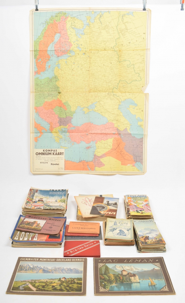 Lot with ca. 115 tourist brochures, nearly all from the 1930s, of places and countries in Europe. Most in Germany, but also Finland, Hungary, Italy and Belgium. With several fine cover designs by Konecsni György, Arisztid Uher and others.