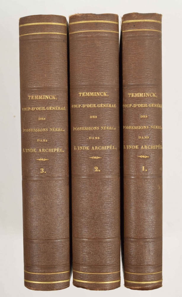 dans l'Inde Archipélagique. C.J. Temminck. Leiden. A. Arnz & Comp. 1846-'47-'49. 8vo, 3 volumes, uniformly rebound, cloth, title on spine in gilt stamping, XXII,379; VIII,471 and VIII,418 pp. Temminck was an aristocrat, zoologist and director of the Rijksmuseum van Natuurlijke Historie. Leiden. Standard work. Very good set (total 3).