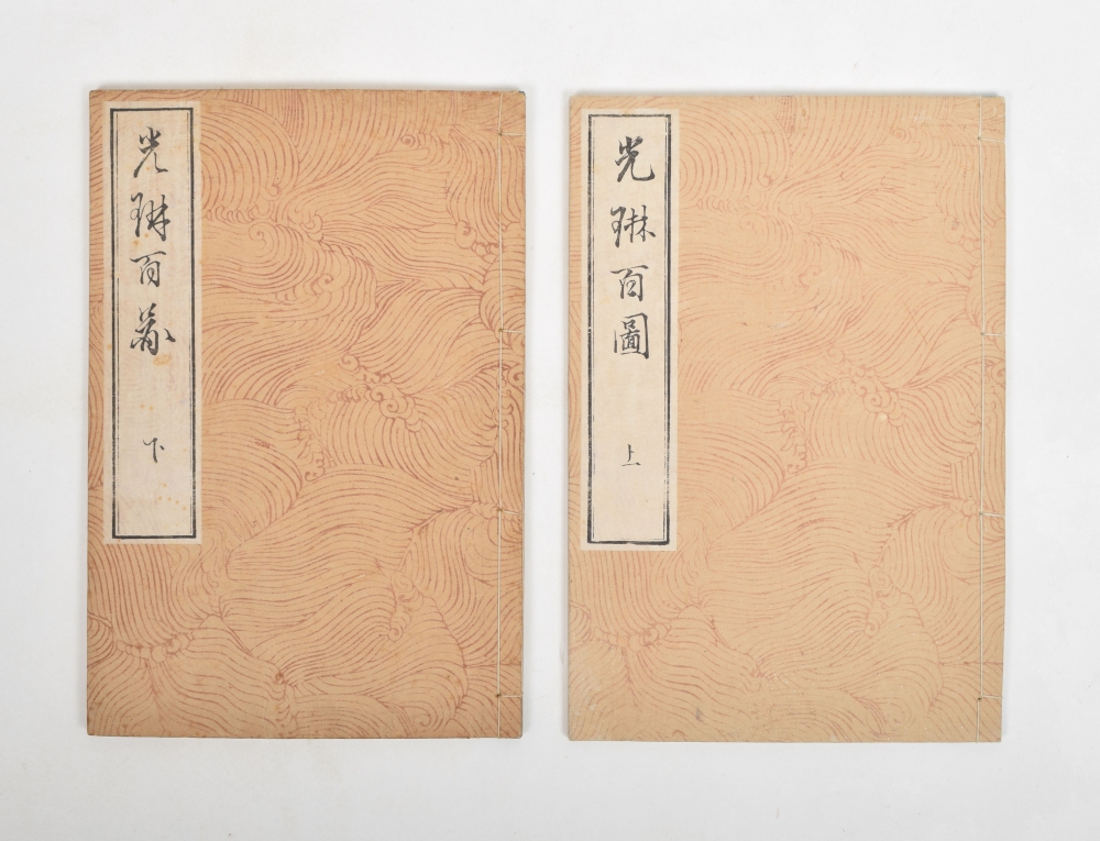 Meiji 30 (1897), 2 volumes, (32); (32) p., with many woodcut illustrations after Ogata Korin, bound as blockbooks in original uniform wrapper, 25.5 x 17 cm.