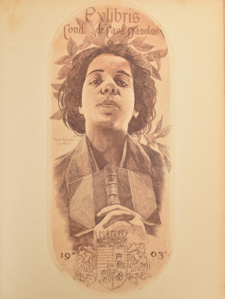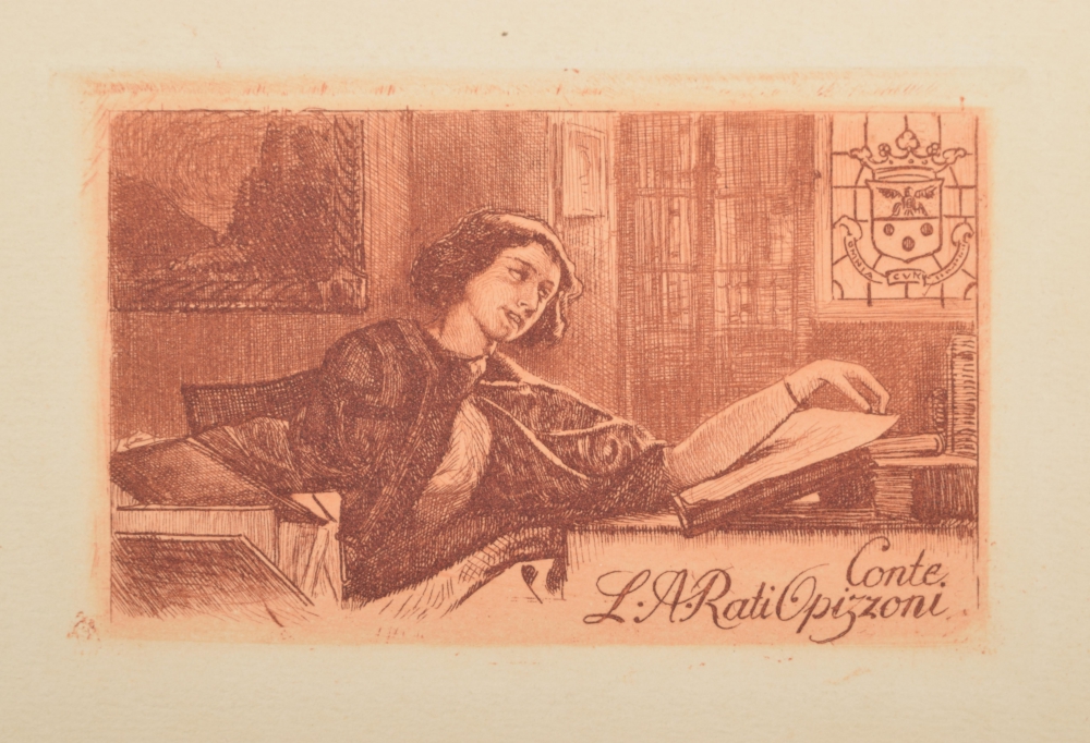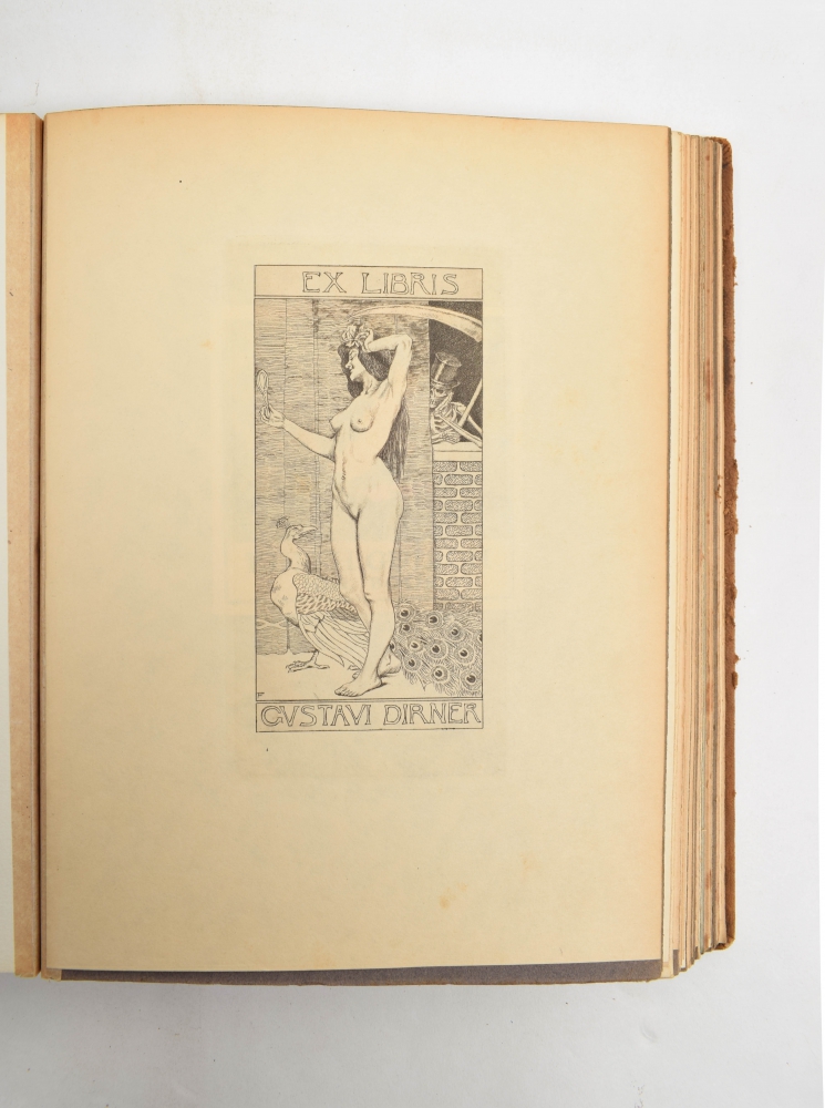 L'ex libris en Hongrie et en étranger. Rédacteur en Chef: Ladislas de Siklóssy. Budapest, Guilde-Saint-Georges Société des Amateurs et Collectionneurs Hongrois, deluxe edition printed in 150 numbered copies signed by De Siklóssy, 158,(2),(7) p., with 26 plates with illustrations and 96 original ex libris in various media, original gilt-lettered suède, 4to (leather with tears and rubbed (dried out)).