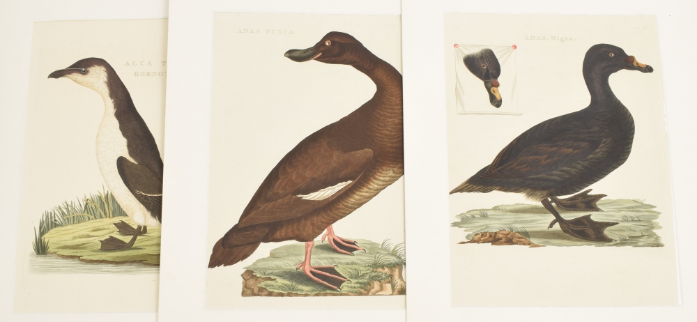 1. Alca Torda Hornotinus [Papagaaiduiker]; 2. Anas Fusca [Bruine Eend]; 3. Anas Nigra [Zwarte Zee-eend]. Handcoloured copper engravings in mount. Ca. 42 x 27 cm., original colouring, on thick paper with wide margins.