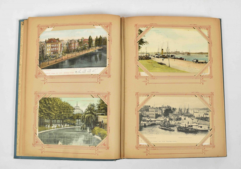 Album with 100 picture postcards Rotterdam, all c. 1900-1930, mostly circulated. Incl. several photocards. Album and cards in good condition.