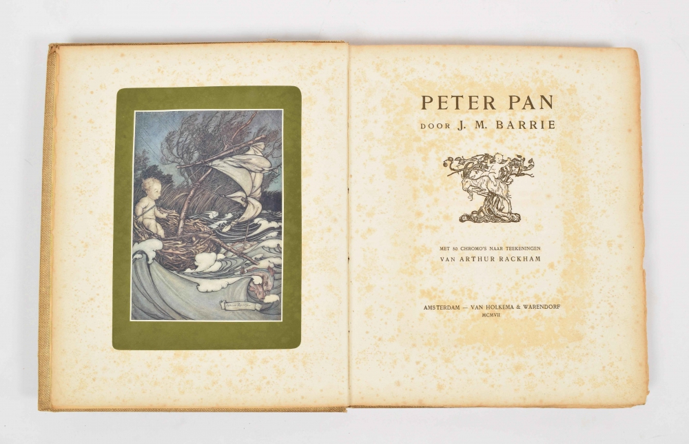 Peter Pan. J.M. Barrie. Met 50 chromo's naar tekeningen van Arthur Rackham. Amsterdam, Van Holkema & Warendorf, 1907. 101 pp. No. 291/325. Paper with some foxing as usual + John Bauer's Bästa. Ett urval sagor ur bland tomtar och troll aren 1907-1915. Ahlén & Akerlunds Förolag, Albert Bonnier, 1931. In halfleather with marbled boards. Light traces of use, fairly good copy.
