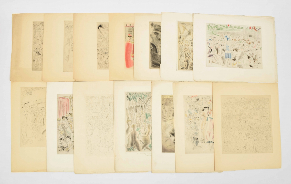 Lot with 21 etchings, incl. several double. Each 26 x 23 cm.