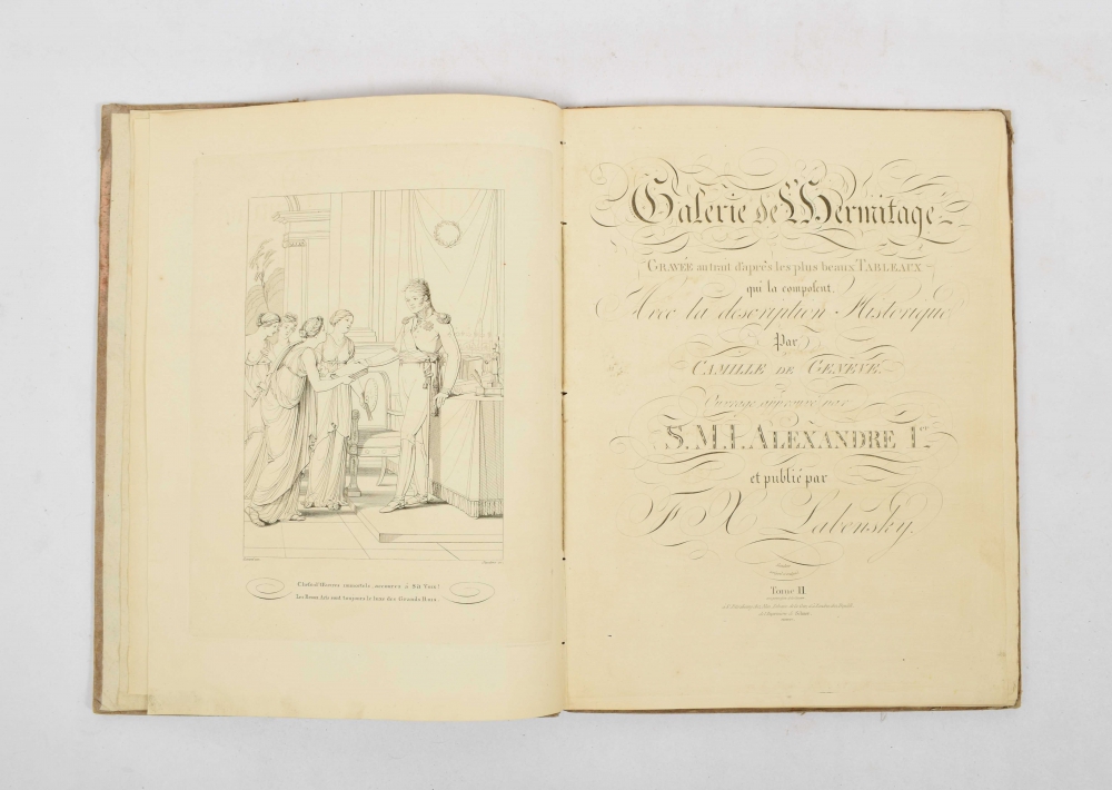 Gravée au trait d'après les plus beaux Tableaux qui la composent. Avec la description Historique. Camille de Geneve. Ouvrage approuvé par S.M.I. Alexandre I.er et publié par F.X. Labenski. Tome II. St. Petersbourg, Alici Librarie de la Cour, Londres, Boydell, 1809.