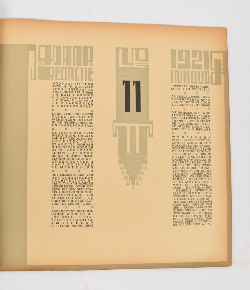 Maandblad voor Bouwen en Sieren van Architectura et Amicitia. No. 11, 1921. Nummer gewijd aan het werk van den Amerikaanschen Architect Frank Lloyd Wright. Introduction by H.P. Berlage, with cover design in lithography after El Lissitzky.