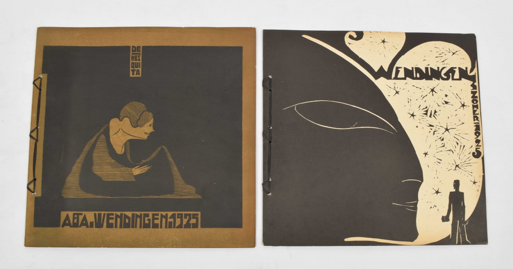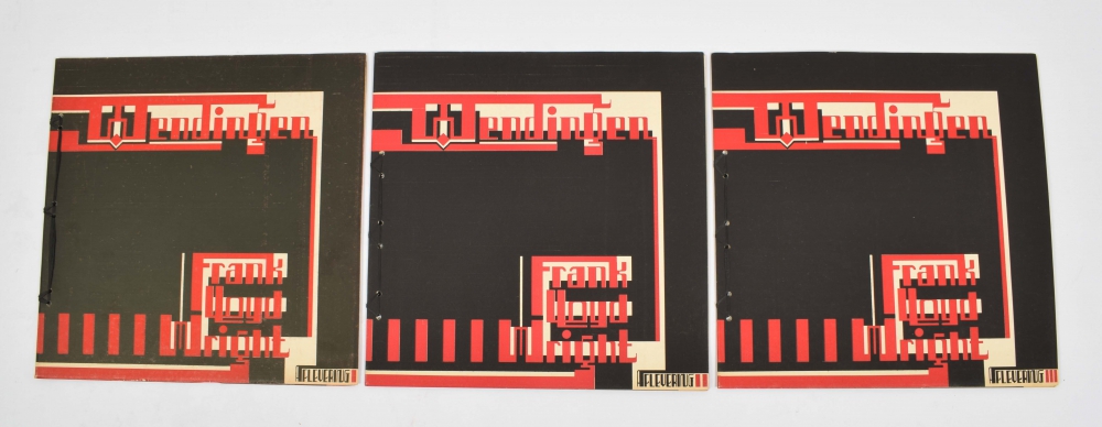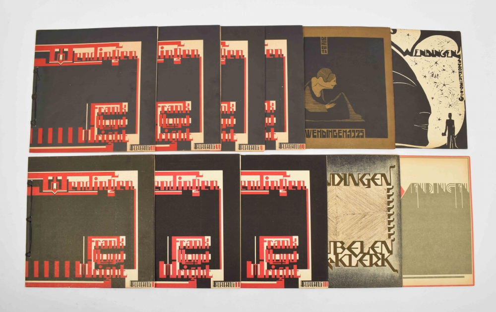 Year 1925. Ed. by H.Th. Wijdeveld. Raffiabound. 1: Teekeningen en etsen van S. Jessurun de Mesquita; 2: Beeldhouwwerken van Hildo Krop; 3-9: The Life-Work of the American Architect Frank Lloyd Wright. Vols. 1-7; 10: Meubelen M. de Klerk; 11-12: Het Gebouw van den Haagsche Bijenkorf. From no. 3 on still in original envelope.
