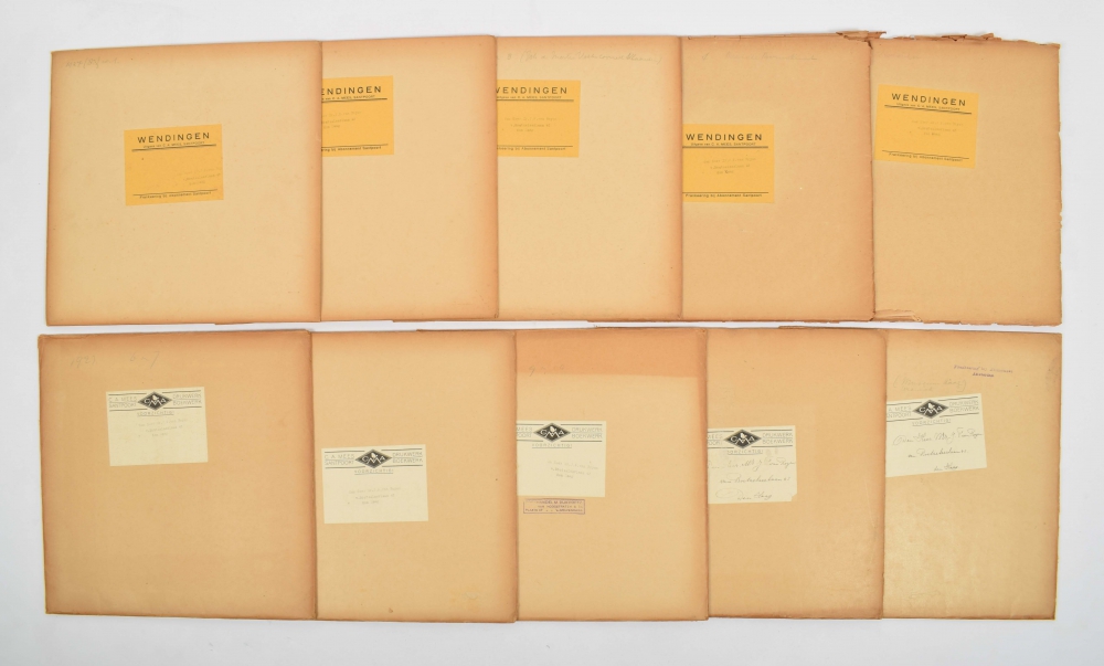 Complete year 1927, ed. by H.Th. Wijdeveld. Raffiabound. 1: Beeldhouwwerk; 2: Interieurs; 3: Regie-werk van Joh. de Meester; 4: Deensche Architectuur; 5: Zweedsche Architectuur; 6-7: De Architectuur in Plan West te Amsterdam; 8: Zweedsche Kunstnijverheid; 9-10: Oostenrijksche Kunst; 11: "Afdeeling Gebouwen" Publieke Werken Amsterdam; 12: Nieuwe Ceramiek. In new condition, still in original envelope.
