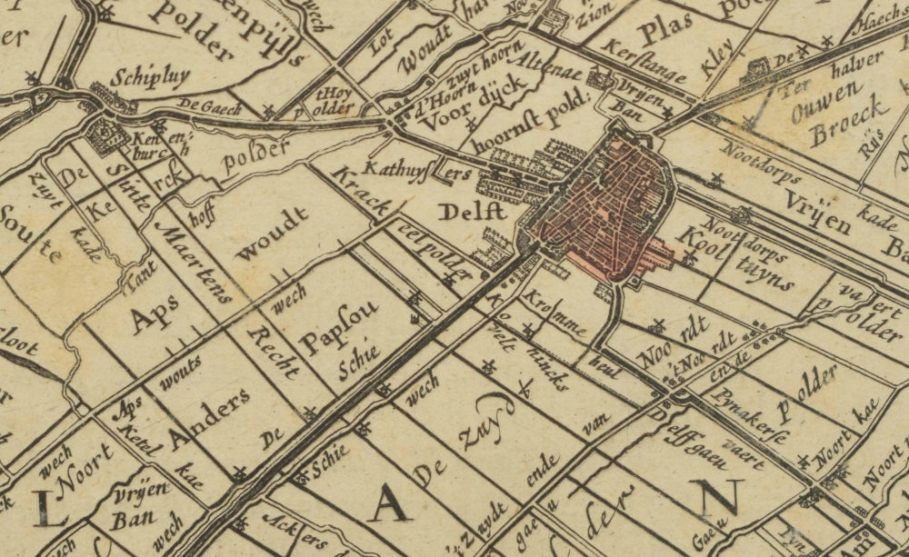 [Blaeu] Sub map Delfland, Schieland with Rotterdam, Delft, The Hague etc.