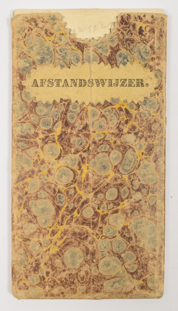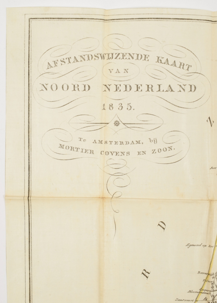 Engraved map with coloured outlines by D. Veelwaard Jr., Amsterdam, Mortier, Covens en Zoon, 1835, 36 x 37 cm., printed on cloth, with finely engraved title in top left corner and legend ("Verklaring" and "Aangenomen Teekens") in bottom right corner, folded in the original chemise and slipcase with printed label "afstandswijzer" on front, 13 x 7 cm. (very good copy).