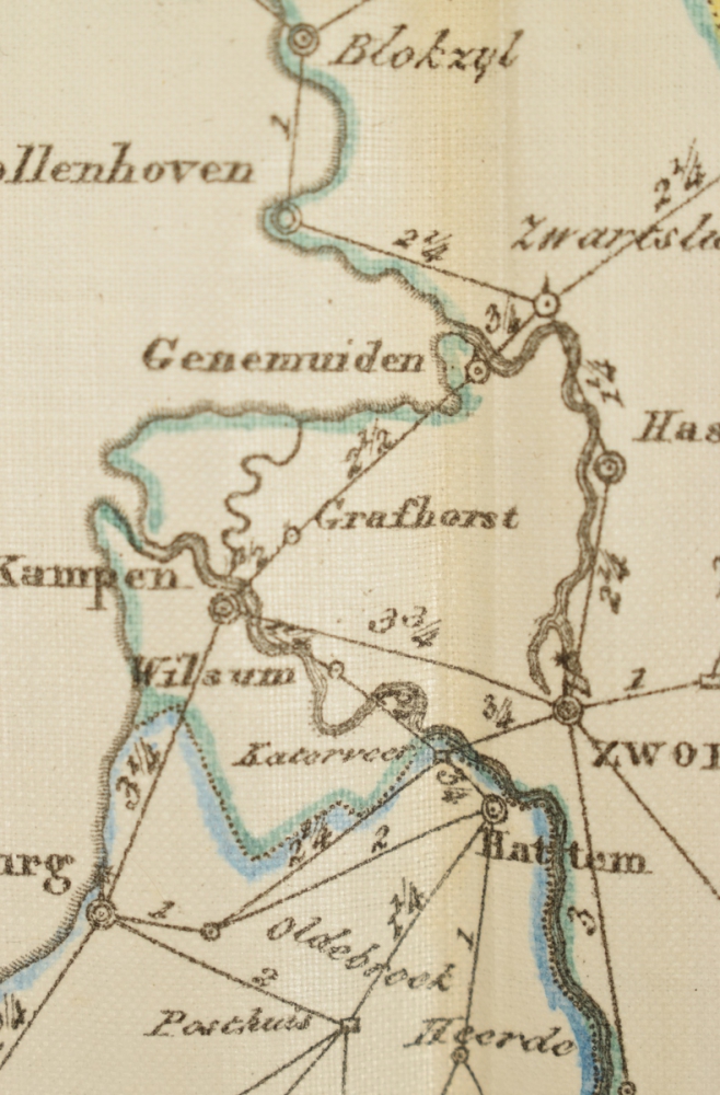 [Road map Netherlands on cloth] Afstandswijzende kaart van Noord Nederland.