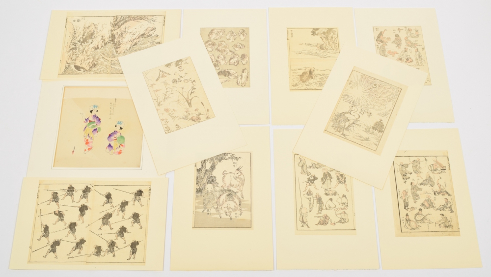 Hokusai (1760-1849). Ten woodcuts from the series "Hokusai Manga",