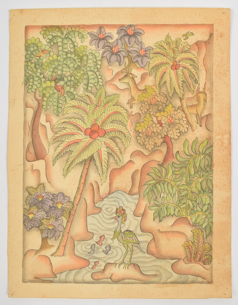 Two gouaches, 27 x 37 cm., both unclearly signed b.l. and with corners affixed to holder with stamp "Sadulur" on reverse.