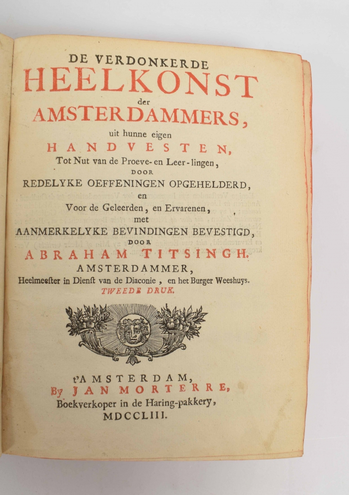 Tot nut van de proeve- en leer-lingen, door redelyke oeffeningen opgehelderd (...). Abraham Titsingh, Amsterdammer, Heelmeester in dienst van de Diaconie, en het Burger Weeshuys. Second edition. Amsterdam, Jan Morterre, 1753.