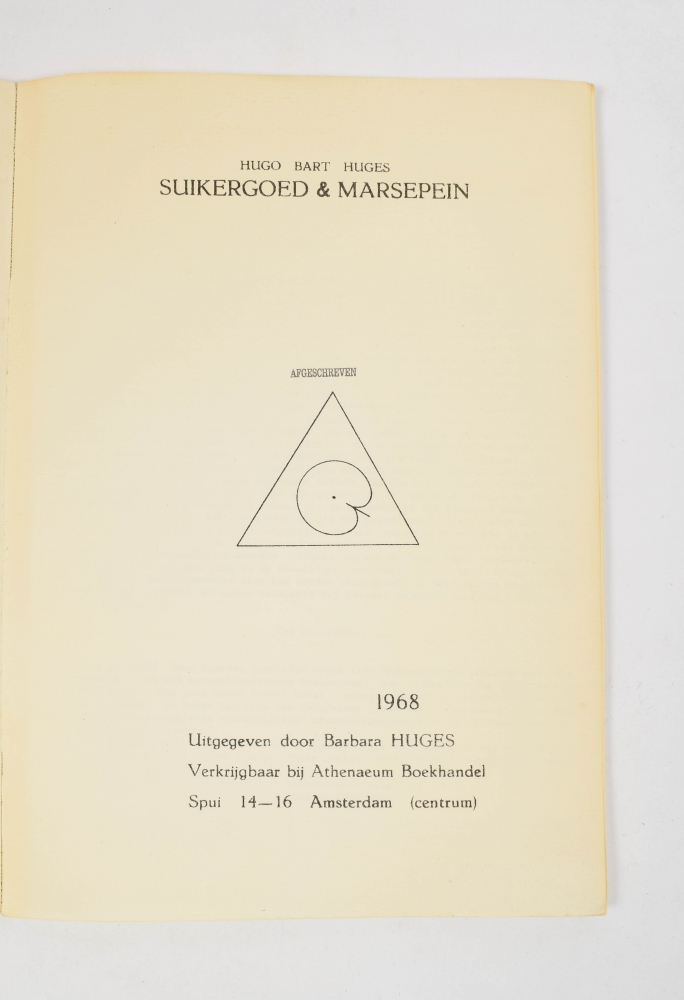 Suikergoed & Marsepein. (Privately published). Barbara Huges, available through Athenaeum Boekhandel, Amsterdam, 1968. 24 pp. Cloth from spine partly loose, binding good. Front board with some staining, light traces of use.