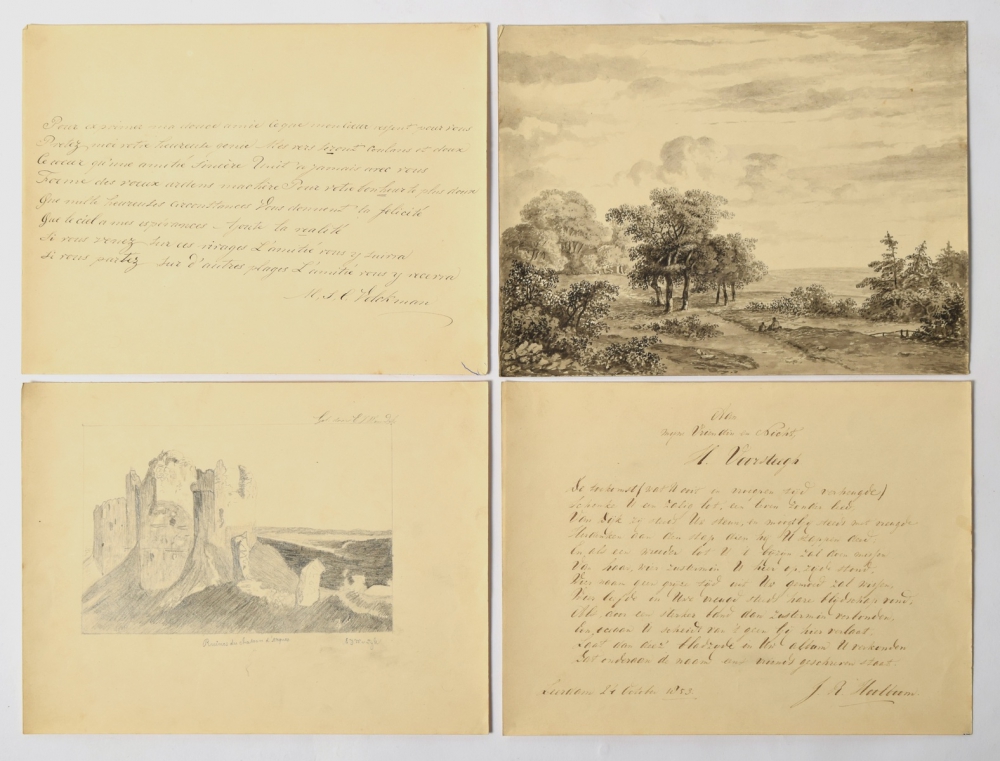 Album 1852-54 of Ms. H. Voorsteegh. Cassette cont. 18 supplements incl. 7 watercolours/ drawings. Dimensions 18 x 24 cm.
