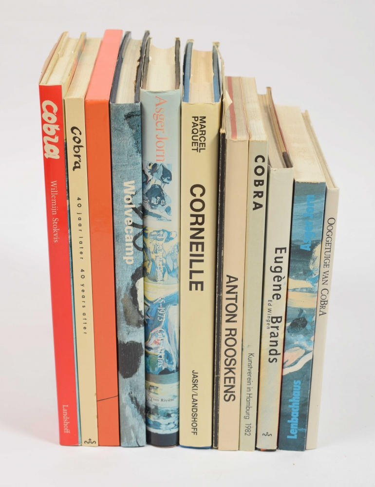 Eugène Brands. Amsterdam, Jaski Art Gallery, 1994. Exhibition catalogue. No. 150/300, in cassette. 44 pp., 4to + Corneille of de sensualiteit van het gevoel, M. Paquet. Wijdenes, Jaski Art Productions, 1988. 154 pp., 4to. With folding plates + Wolvecamp, A. Colpaart et al. Venlo, Van Spijk, 1990. 168 pp., 4to + Asger Jorn 1914-1973, Armin Zweite. München, Lenbachhaus, 1987. 285 pp., 4to + Cobra 40 jaar later, 40 years after. C. Van der Heijden et al. (catalogue). The Hague, Sdu Uitgeverij, 1988. 192 pp., 4to + 7 more.