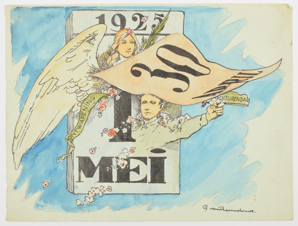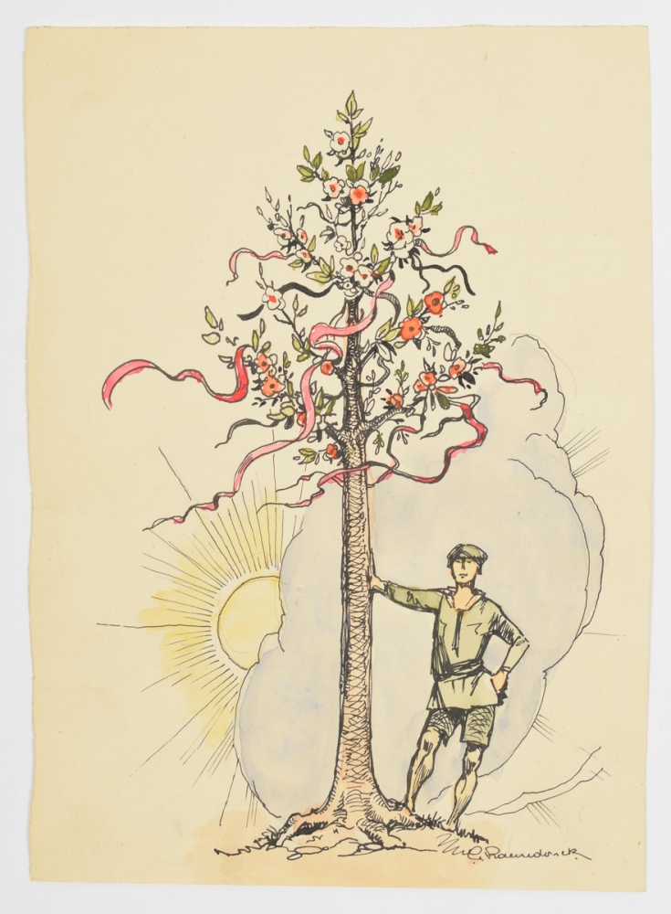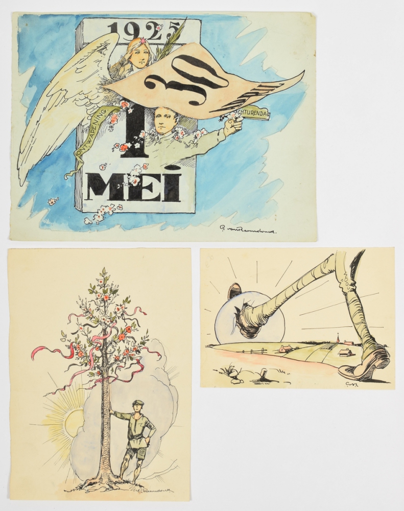 '1 Mei 1925'. Watercolour with India ink. 19.5 x 26 cm. + Maypole illustration. 21 x 15 cm. - and 1 more (12 x 16 cm.).