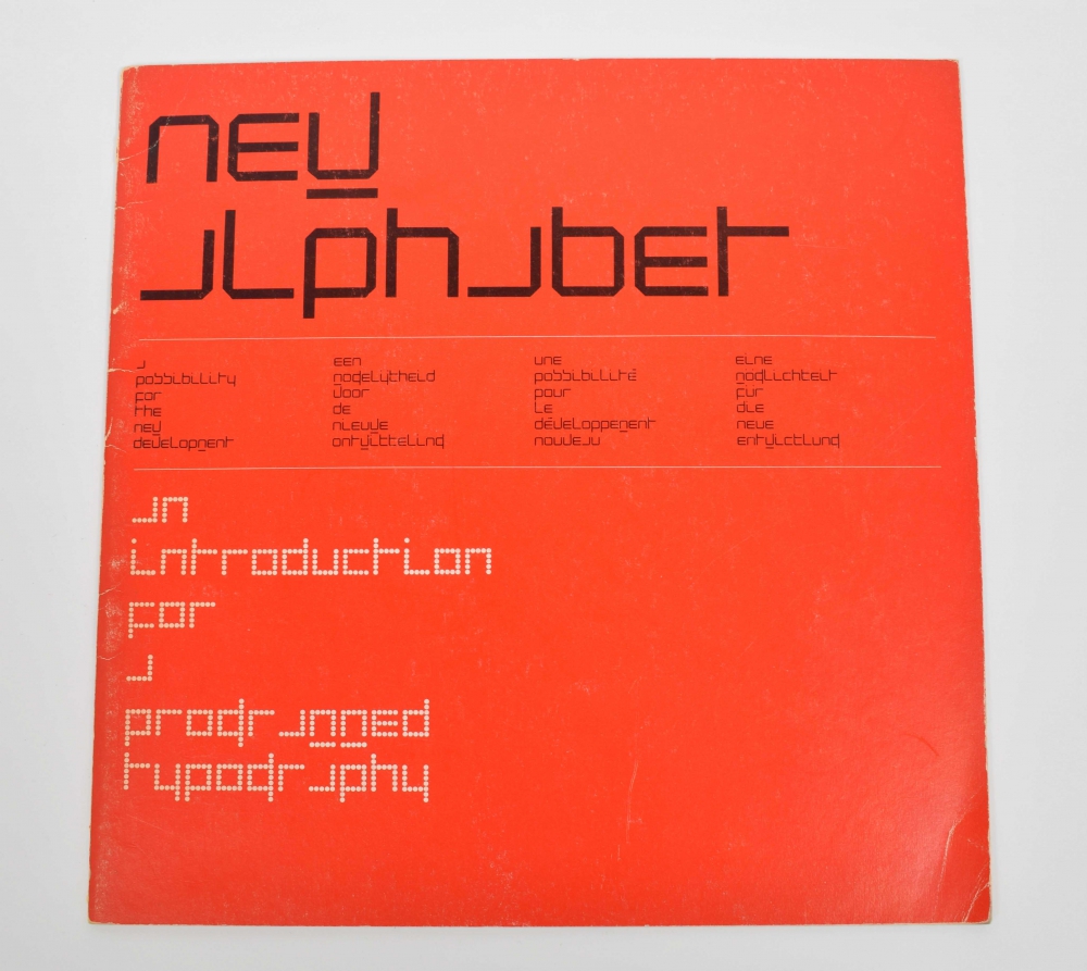 Wrapper with small dents, back cover slightly sunned/ soiled. Kwadraatblad. Very early attempt at making a suitable typographical alphabet for computers, a classic example in the world of experiment typography.