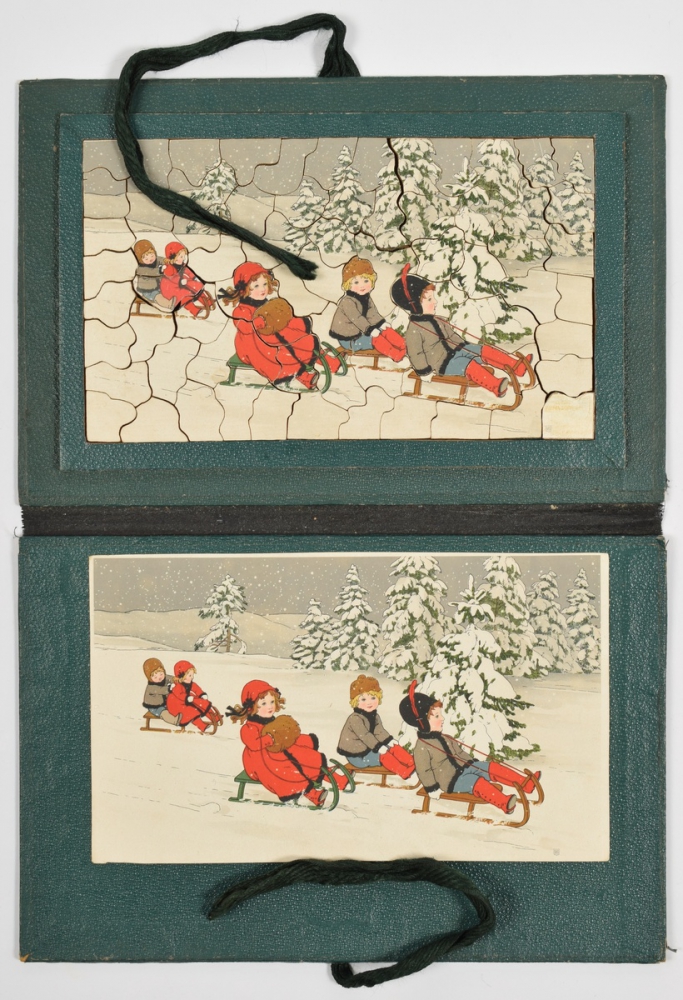 Tuck's Puzzle Postcard, c. 1910. Serie 15B; British Battles + Serie 8 Aux Pays Lointains + Bonzo 35 piece jig-saw puzzle "I'm in great spirits here!" in box + Bonzo puzzle 'Twink' - and another 6 puzzles pre-1940.