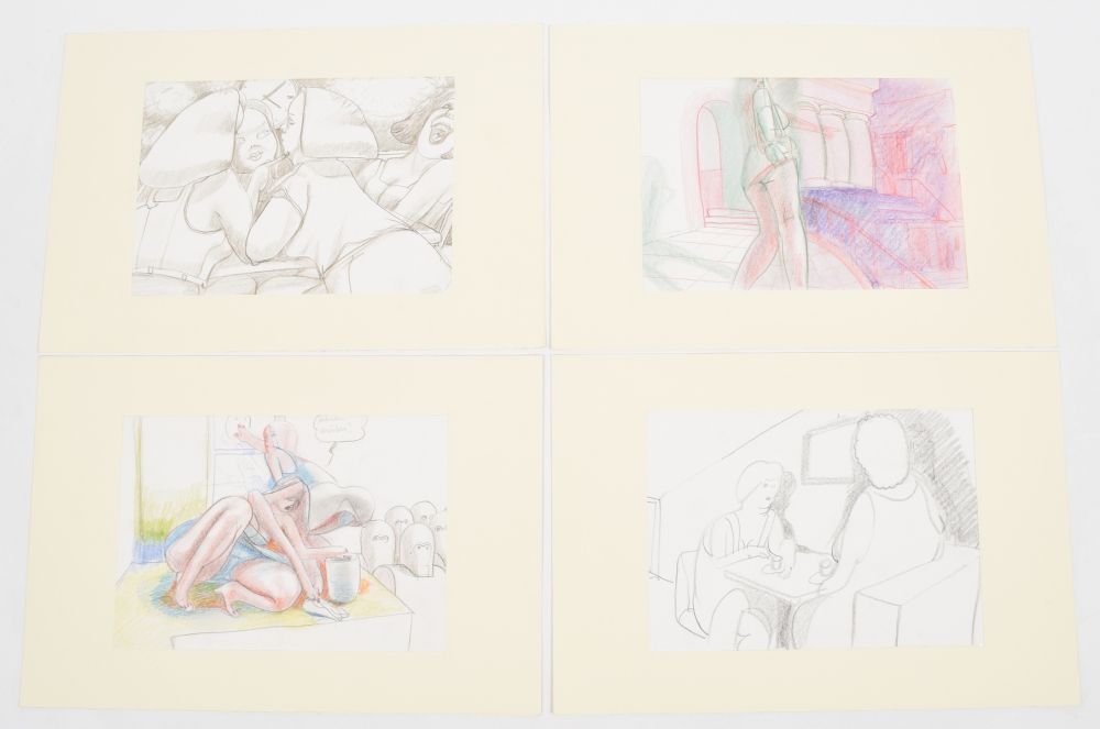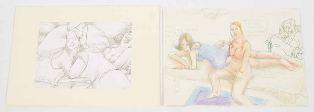 Lot with 15 drawings with erotic character in pencil, of which 9 in colour. Each ± 21 x 29 cm, in mount.