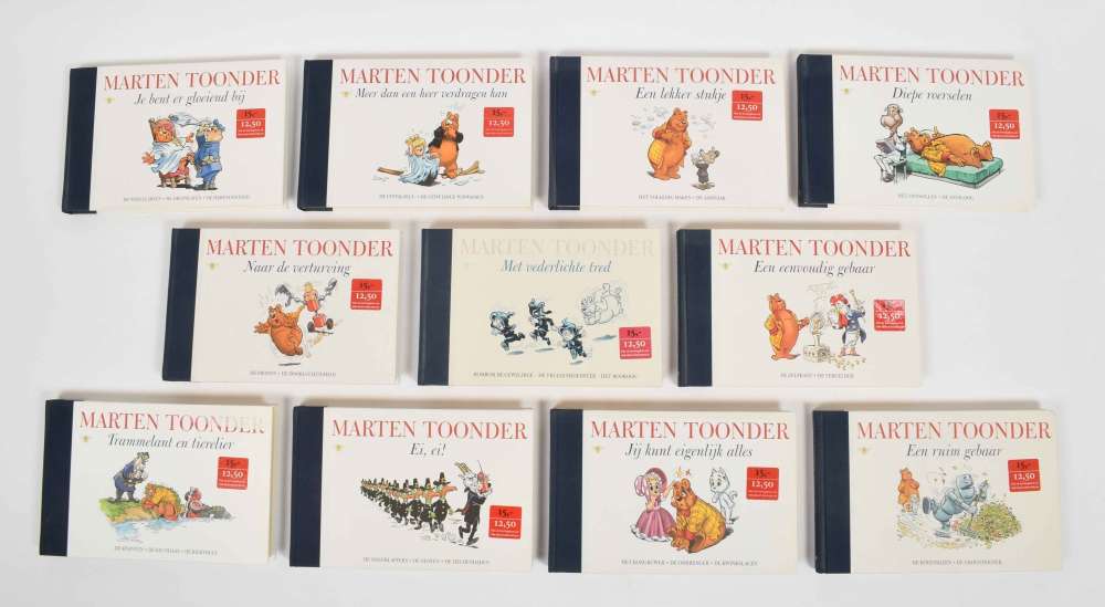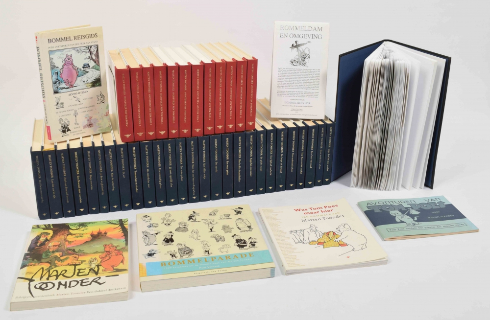 Avonturen van Tom Poes vols. 1 to 12. Bezige Bij, 2006-2008. Oblong, bound in halfcloth + Alle verhalen van Olivier B. Bommel en Tom Poes, 27 vols. from the Bezige Bij series, between 2008 and 2013. Oblong, bound in halfcloth - and another 6 Sir Oliver publications.