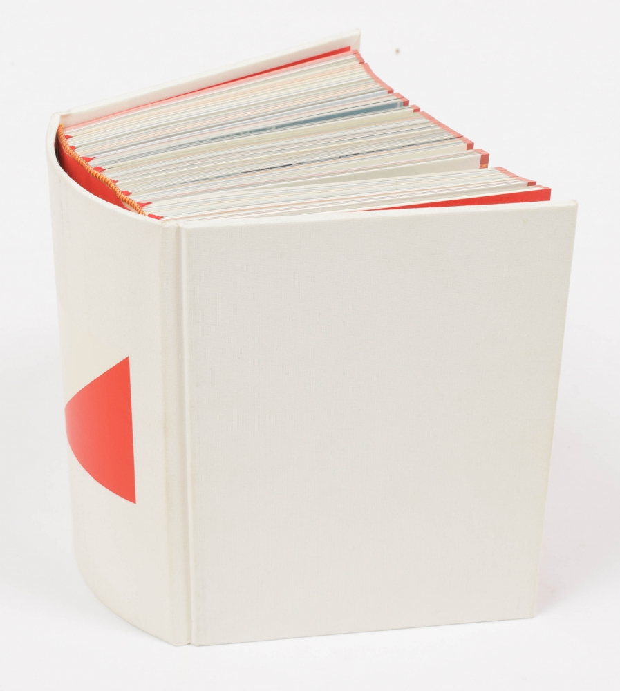 Irma Boom / Johan Pijnappel, voor de Steenkolen Handelsvereniging, 1996. 2136 unpaginated pages. 11 cm thick and 3.5 kilos in weight, with 8 bookmarks. Anniversary edition in English, which caused a stir when it was released. Technically advanced work of art combining laser printing, perforations, complex grids, etc. Edition of 3500 copies. With cassette.