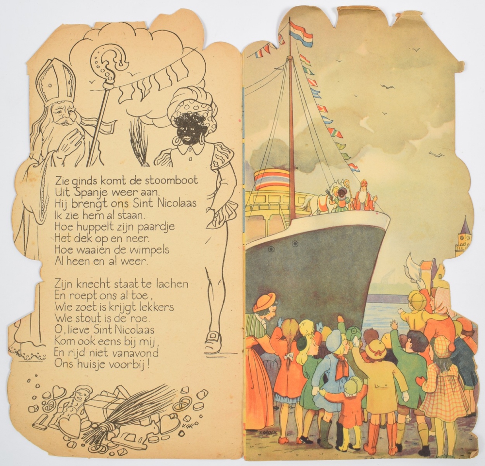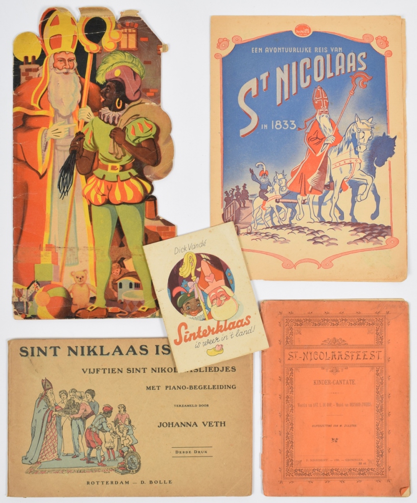 Een avontuurlijke reis van St Nicolaas in 1833. Grocer's promotional edition, c. 1948. Stapled, 6 p. + Sinterklaas is weer in t land! Dick Vandé, Van der Horst, 's Gravenhage, c. 1960 - and 3 more.