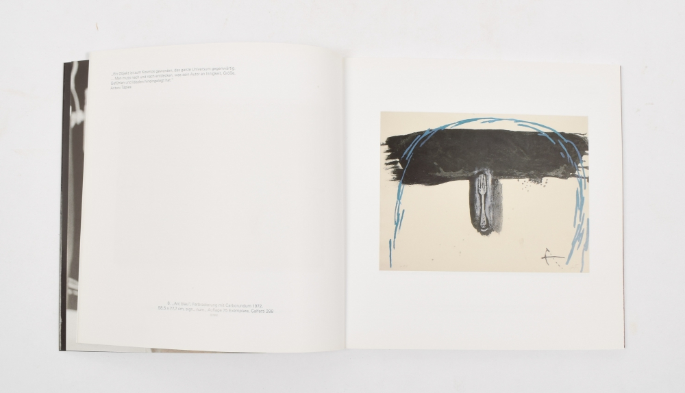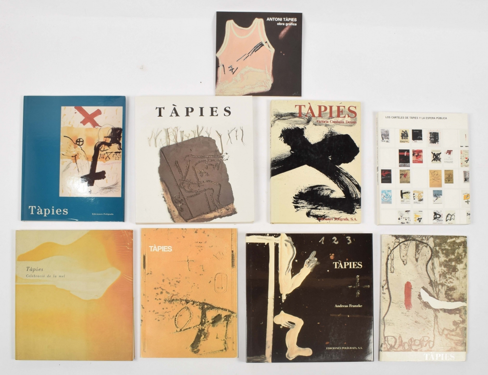 (2) Victòria Combalia Dexeus. Tàpies. Ibid., idem, 1986, 128 p., 87 coloured illustrations, original cardboard with dust jacket, 4to; (3) Antoni Tàpies. (Text by J.-L. Chalumeau). Ibid., idem, 63 p., many illustrations, original cardboard with dust jacket, small folio; (4) Tàpies. Exhibition catalogue Museo Nacional Centro de Arte Reina Sofia, 2000, 348 p., profusely illustrated, original wrapper, large 4to. And with 5 more. (total 9)