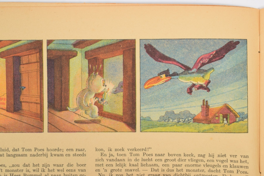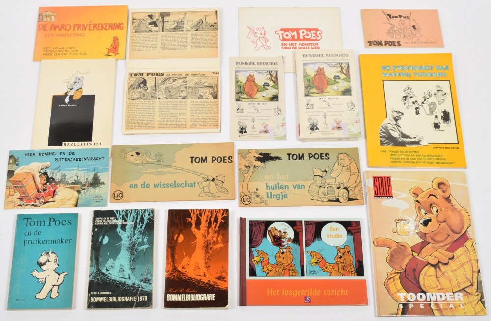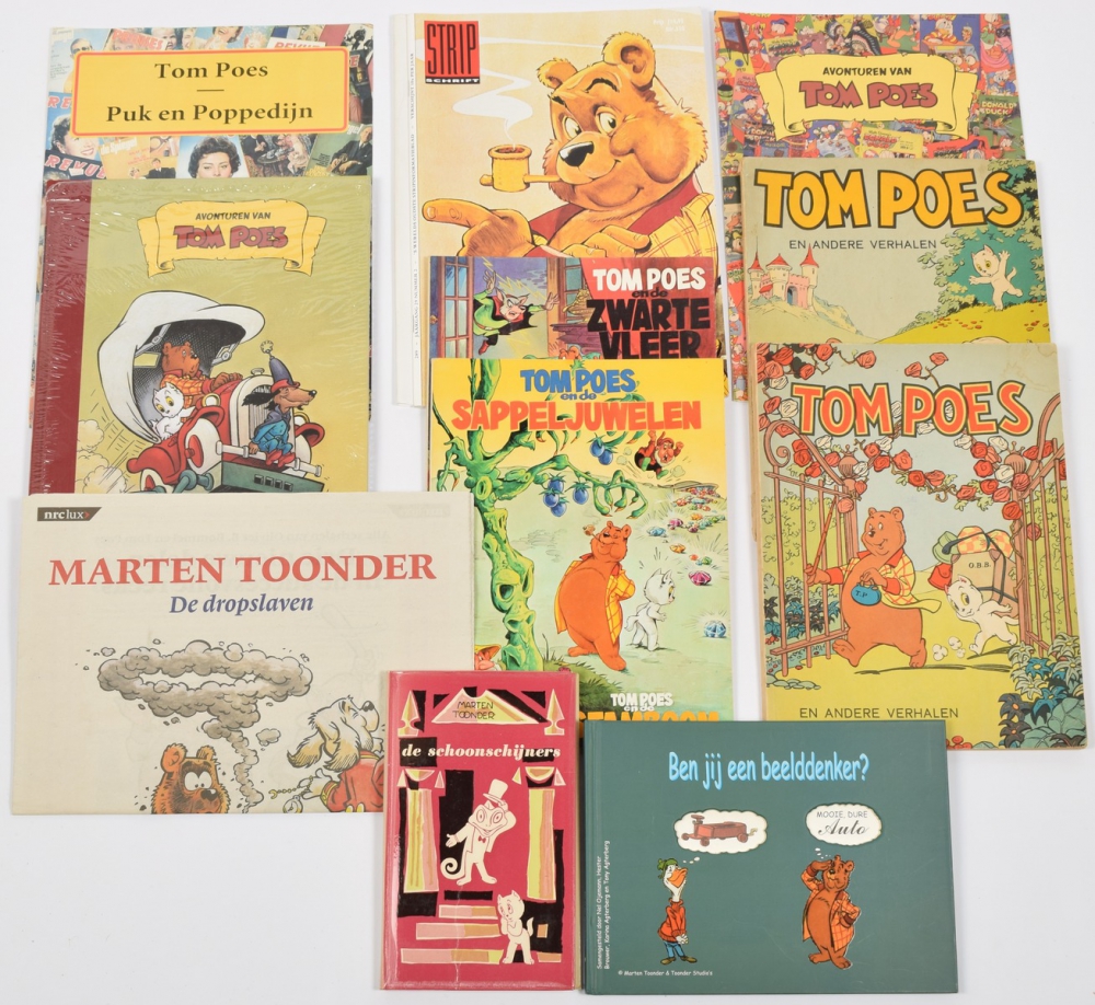 Tom Poes en de Watergeest, Bezige Bij, 1950. In halfcloth, 61 p. Name to endpaper, else clean copy + Tom Poes en de Reuzenvogel. De Muinck & Co, 1946. Sl. open at spine, else good + Bommelbiografie Henk R. Mondria, Panda, 1974. 280 p. In used condition, with signature Marten Toonder + Panda en de Meesterdief. De Bezige Bij, clothbacked hc, 1950. Light traces of use - and 36 more.