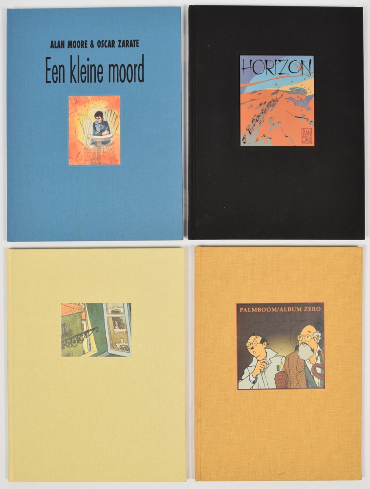 Dick Briel, in handbound deluxe album in cloth with inserted sketch. Privately issued, 2000. Edition of 76 signed copies + Horizon. Lian Ong. In cloth with pasted front plate. Numbered and signed + Cabanes. Sweet Sixties. Sherpa, 1993. Deluxe cloth, no. 14 of 15 hc with bookplate - and Een kleine Moord. Alan Moore & Oscar Zarate, Sherpa, 1991. One of 25 deluxe cloth with numbered and signed bookplate.