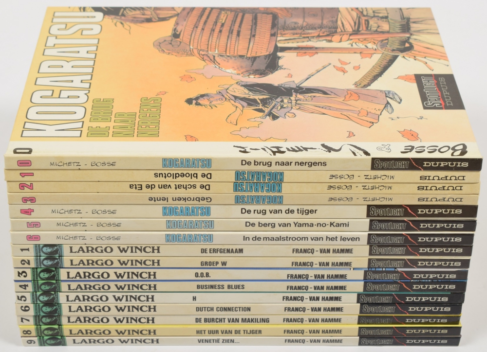 Franq/ Van Hamme: Largo Winch vol. 1-9, Spotlight Dupuis hardcover series, 1990-98 + Kogaratsu vol. 0-6, Spotlight Dupuis hardcover series, 1988-95.