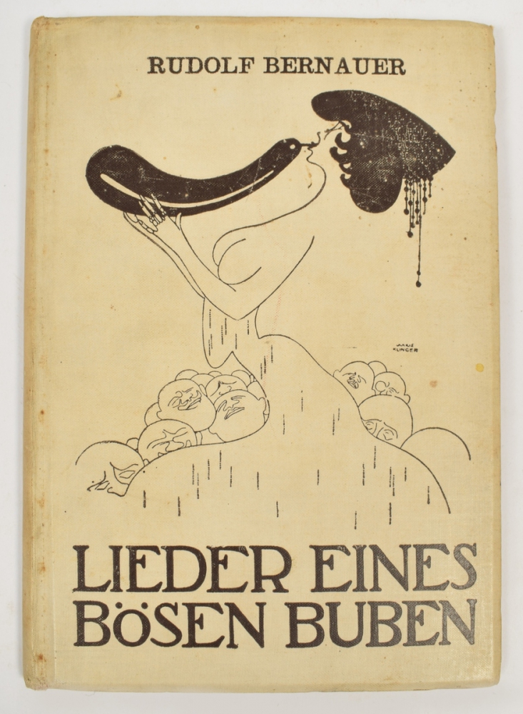 Zeichnungen von Julius Klinger. Harmonie, Verlagsanstalt für Literatur und Kunst, Berlin, 1907. 12 (incl. wrapper) full-page art nouveau ills. by Klinger. 4to, bound in cloth.
