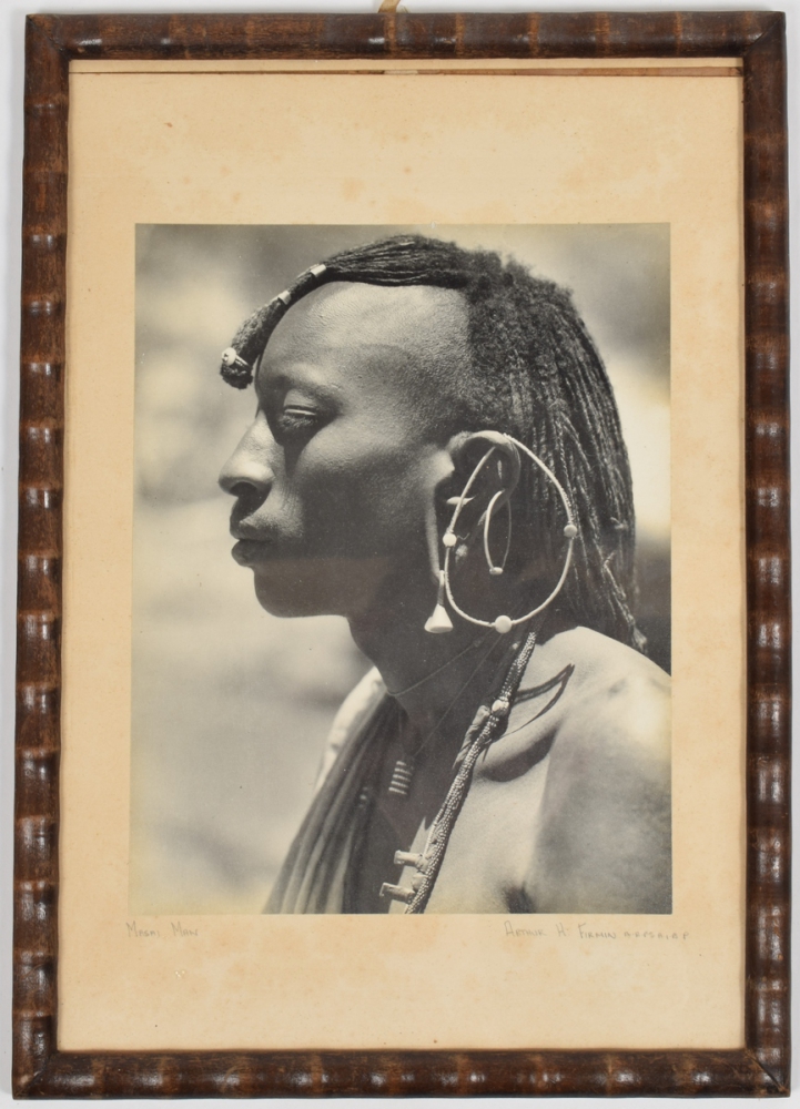 Gelatin silver photo Masai Man. Signed in pencil Arthur H. Firmin. Image 18.5 x 23.5 cm. Framed under glass.