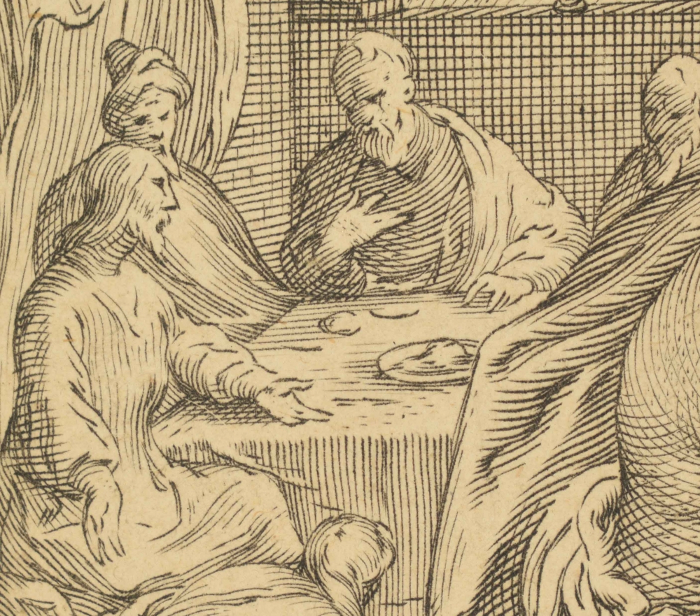 Engraving after Hendrick Goltzius (1558-1617), the first from the series of famous women of the New Testament, 19 x 13.5 cm., printed signature top right, numbered "I" in bottom left corner and with poem in Latin after Balthasar Schonaeus below the image, affixed to mount with pin (minimal rust spots).