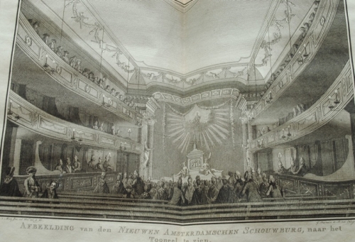 See the Dutch description: Historie van den Nieuwen Amsterdamschen Schouwburg. G. Warnars en P. den Hengst, Amsterdam, 1775. [6], 56 p. Met 5 dubbelpag. gravures door N. vd Meer.