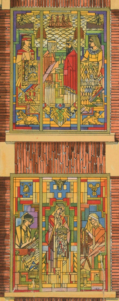 Description on reverse of the architecture of the building. Frayed along edges and mostly loose in middle fold. 80 x 80 cm.