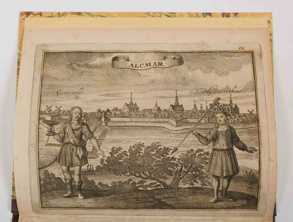 Small 4to, new binding, half faux-leather with marbled boards, copper engraving with view of Alkmaar, title page, 42 pp. = p. 714-755. Stand-alone chapter from the aforementioned work. Text sl. tanned. Scarce.