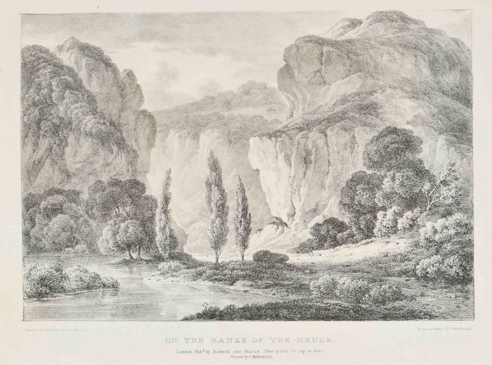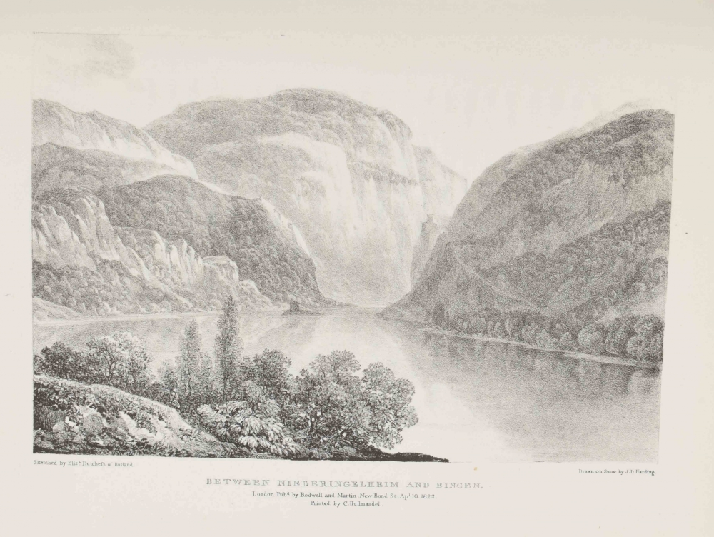 [J.H. Manners, Duke of Rutland]. London, Rodwell and Martin, 1822. First printing. Large 4to, cloth, title on spine in black and gilt stamping. Title, list of plates, 131 pp., complete with 13 lithographs outside the text, each with blotter. A few small brown stains to title page and next two leaves, outside the text. Lithographs by Elisabeth, duchess of Rutland, finished by C. Hullmandel. Spine somewhat discoloured. Good copy.