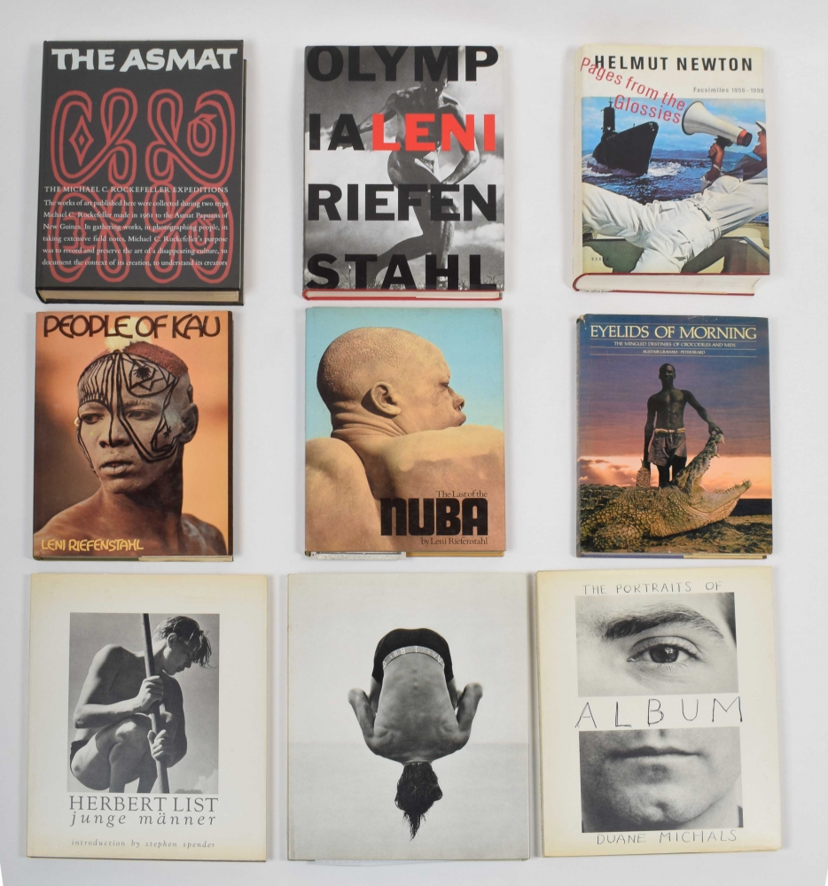 New York, Museum of Primitive Art, 1967, 349 pp. Bound with dust jacket, 4to. Small tear to back of DJ, else good + Leni Riefenstahl, Olympia. Foreword by Monique Berlioux. New York, St. Martin's Press, 1988, 288 pp. Bound with DJ, 4to. Good copy + Herbert List, Junge männer. Introduction by Stephen Spender. Thames and Hudson, 1988. 1st ed. Bound with DJ, 4to. DJ sl. discoloured, else good - and 6 more.