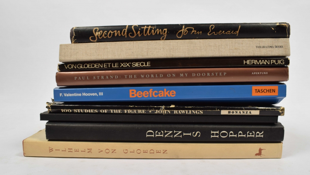 Twelvetrees Press, 1986, 1st ed. Bound with dust jacket, 4to. DJ with minimal tear, else good copy. With loosely inserted 2 Hopper exhibition posters etc. + Herman Puig, Von Gloeden et le XIXe siècle. Paris, Herman Puig, 1980, 1st ed. 88 pp., orig. wrapper, 4to. Wrapper with light traces of use, else good + Wilhelm von Gloeden, Taormina. Twelvetrees Press, 1986, 1st ed. Bound with dust jacket, 4to. DJ sl. soiled, else good + Fabrizio Ferri, Acqua. Pediatric Aids Foundation, 1992. Bound, 4to. With dedication by Ferri - and 5 more.