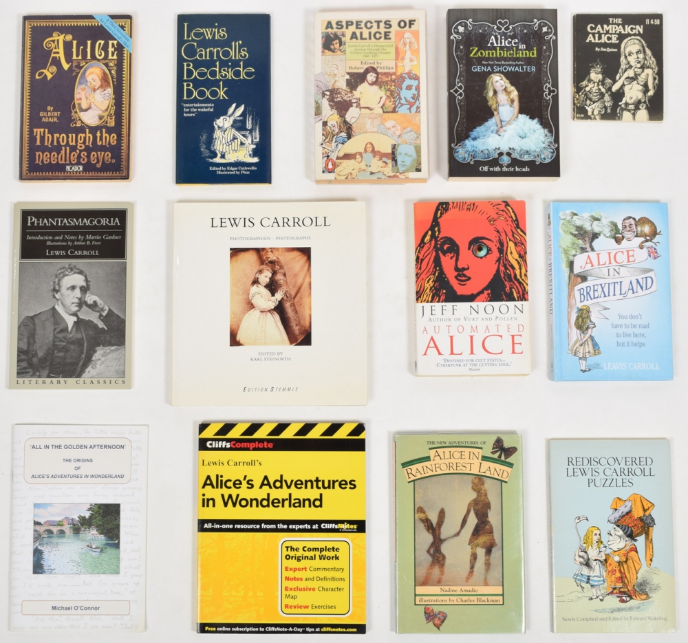 (...), Jim Quinn. Daley News & Harvest, Amsterdam, 1972. 119,(4) pp. 13 x 10.5 cm + Alice in Brexitland, Leavis Carroll (Lucien Young). Ebury Press, London, 2017. 102 pp. 20.5 x 14.5 cm + Drawn into Wonderland, Brian Partridge. PH Topics, Norfolk, 2004. 1st ed. Signed on title p. 56 pp. 22 x 15.5 cm + Lewis Caroll in Numberland, Robin Wilson. Allen Lane, London, 2008. 237 pp. - and 53 more.