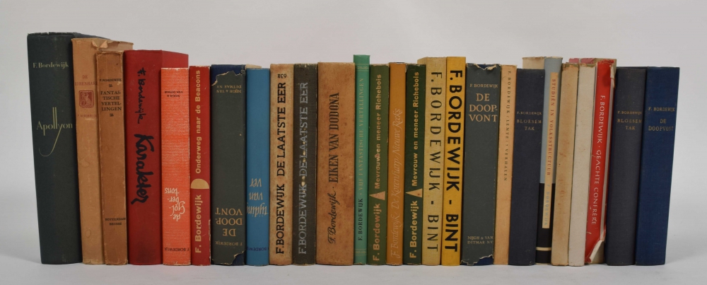 Bint. Roman van een zender. De Gemeenschap, Utrecht. 1934. 1st ed. 131,(2) pp. Binding with traces of use, else good + facsimile edition, 1984. 131,(2),x pp. + Karakter. Nijgh & van Ditmar N.V. Rotterdam, 1938. 1st ed. 366,(2) pp. Cloth. Good copy, with 3 bookplates + Fantastische vertellingen. W.L. & J. Brusse's Uitgeversmaatschappij. Eerste bundel, 214 pp. Signed 'Seth R. Gaaikema 1964' + Apollyon. Nijgh en van Ditmar N.V., Rotterdam, 1941. 1st ed. Exceptionally fine copy - and 21 more.