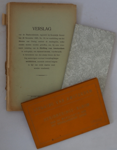 See the Dutch description: T.J. Wijnoldy Daniëls, Amsterdam, 1916, (72) p., ills., orig. linnen met gouden letters, oblong octavo. Luxe uitgave. + Amsterdam in staat van beleg! J.C.C. Den Beer Poortugael. M. Nijhoff, Amsterdam, 1878, 2 uitslaande gelithogr. platen met 6 plattegronden, tabellen, latere band - en 1 andere.